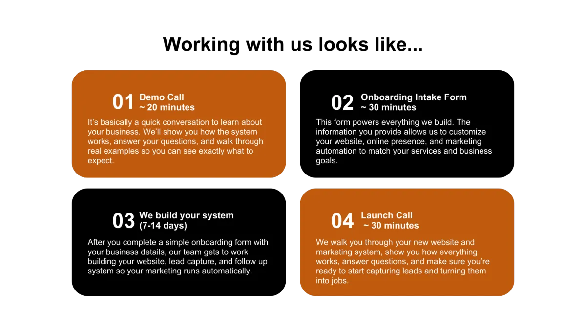 Perfect for small contractors who want a simple system to capture leads.